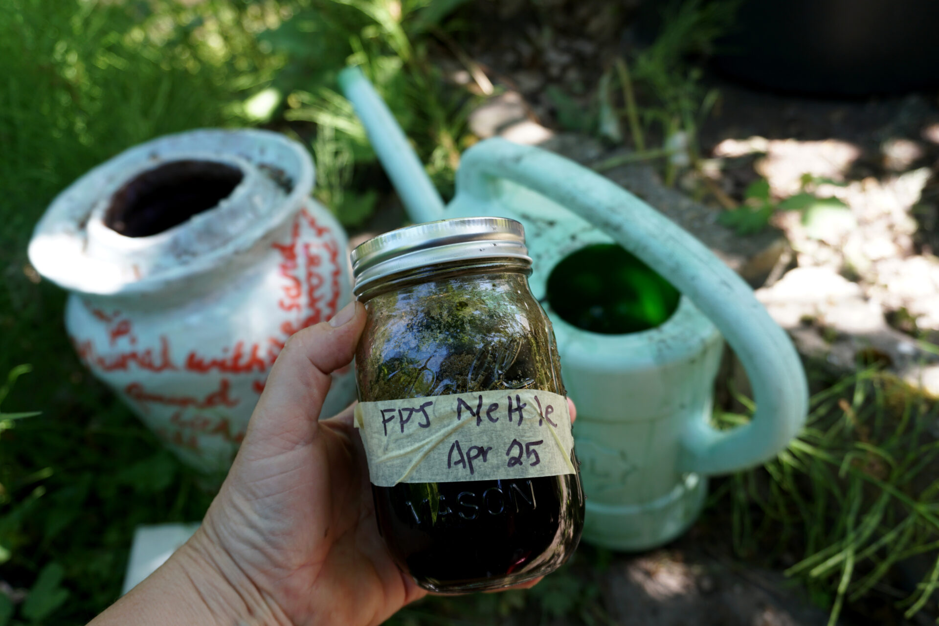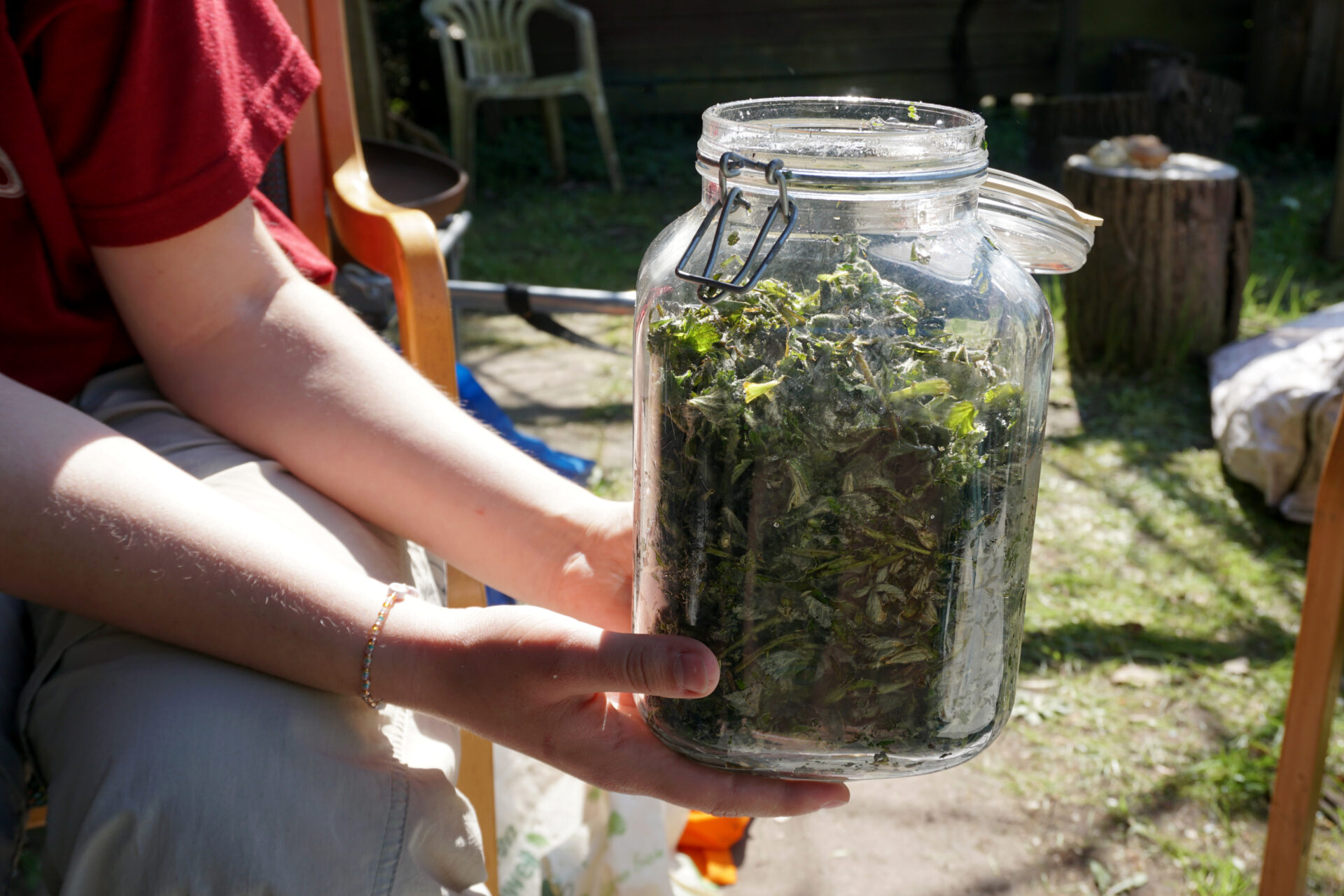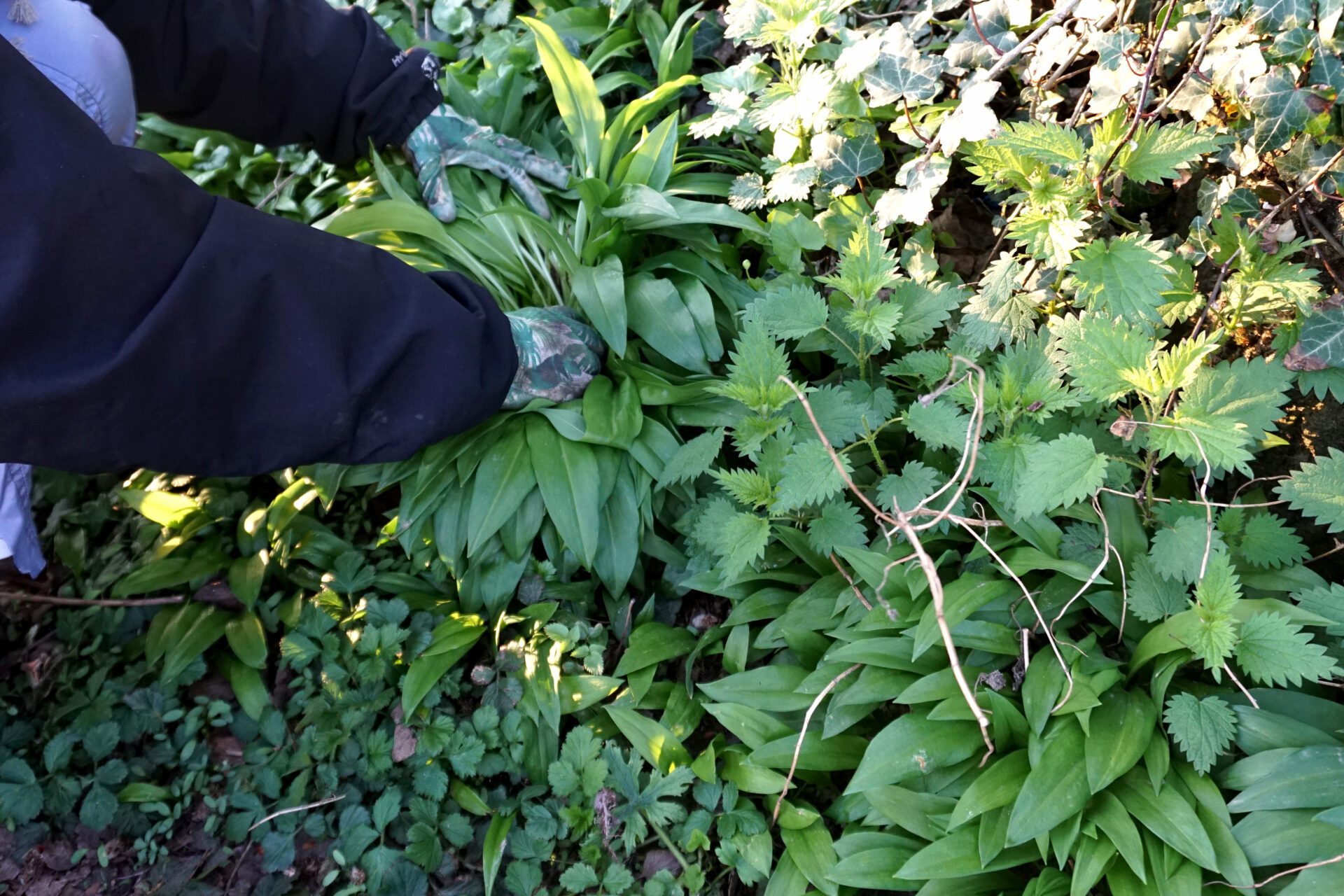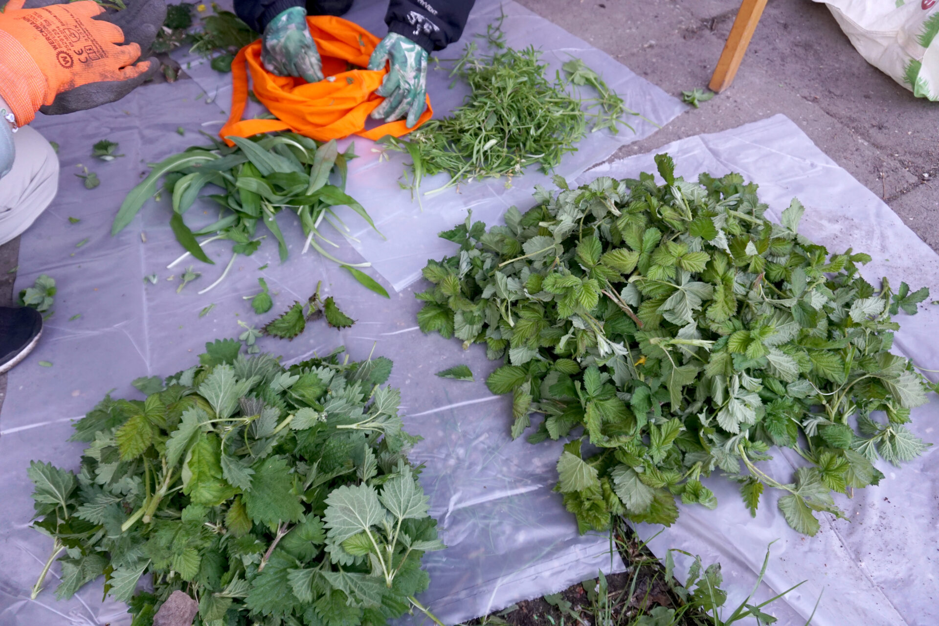 Ingredients: tops of young nettle plants, wild garlic, fresh blackberry shoots, raw sugar