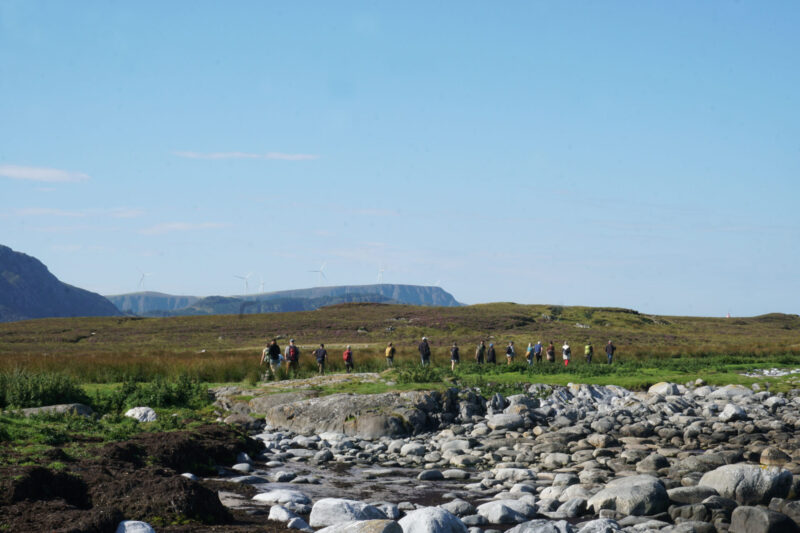 Ingredients: bodily memories of a walk taken yesterday where the group has experienced several encounters with geological time, movements, surges, swells and ripples between the interior space and its surroundings, shifts in weather between sunshine, gusting wind and rain, a news story about extreme temperatures and dying reindeer, a story about environmental loss and wonder, freshly harvested garlic, raw sugar, kitchen scale