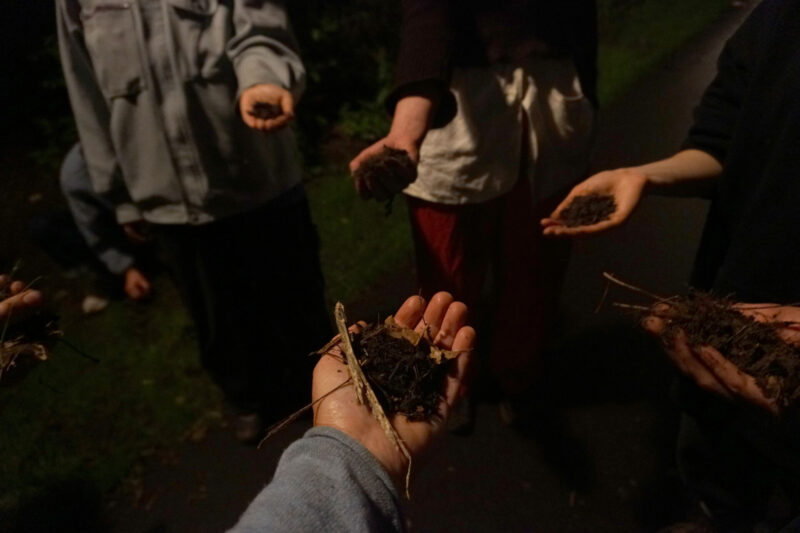 Ingredients: strawberry moon, molasses, fresh oregano, rain water, worm castings, compost, sea salt, oats, fire, wood, flour, stories about collective solidarity, world building, and global struggles for liberation and healing, a stick for stirring, strawberry plants, freshly harvested garlic, foraged forest soil grabbed by the handful, slugs, plant seedlings, handmade paper, writing materials, darkness, silence, the deafening roar of awakening birds, handmade quilts, pillows